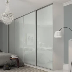 Ellipse Sliding Wardrobe Door 4 Panel Arctic White Glass With Aluminium Frame (W)610mm