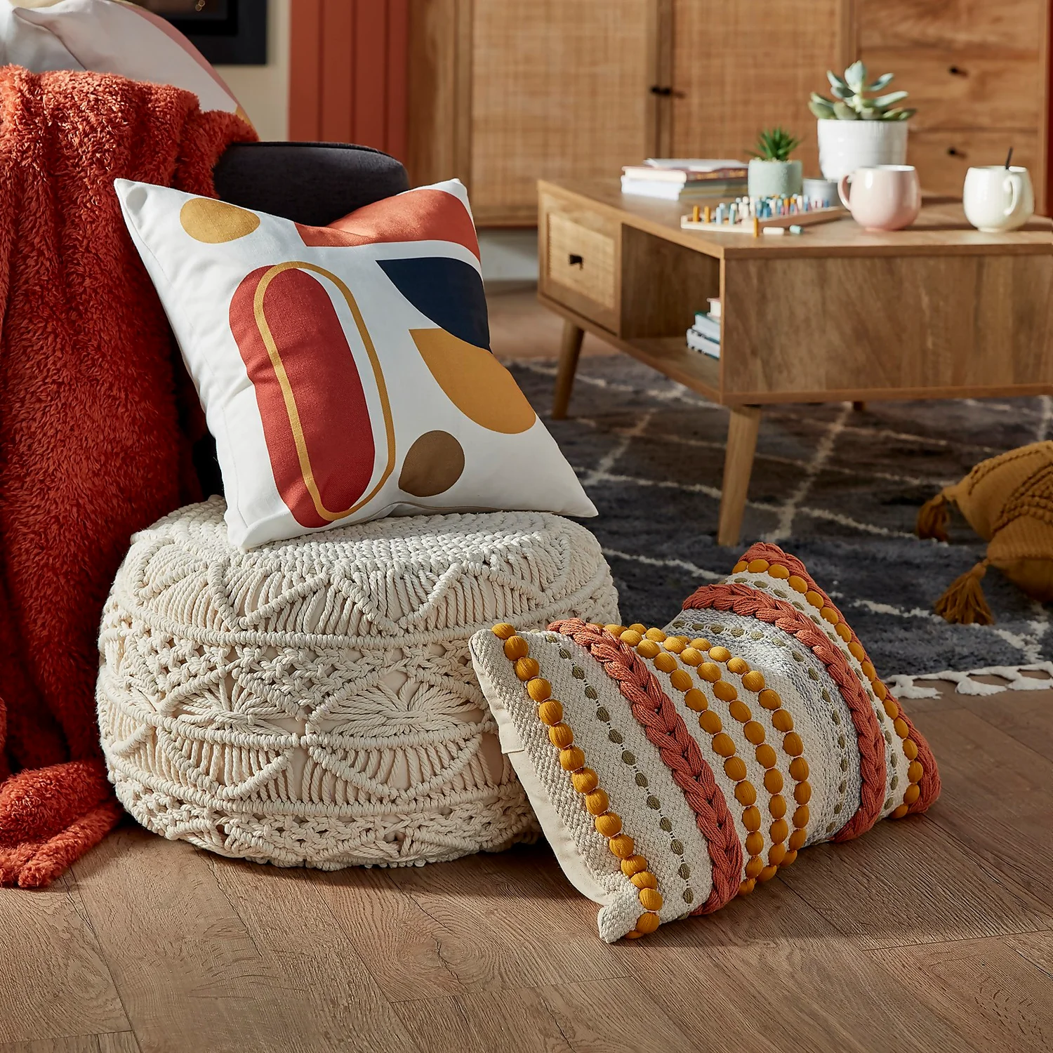 In a trendy macrame finish, our Bertie pouffe takes this boho trend and runs with it. This crochet cutie will provide your space with a cosy ambience. It will add a lovely textured touch to your seating area, as well as giving you a place to perch those tired legs after a hard day.