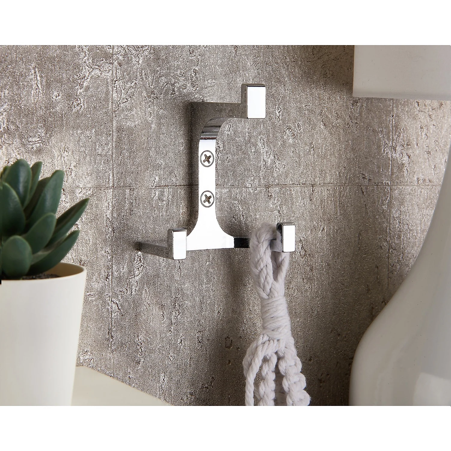 Art deco style cubic tri-hook with a chrome finish.