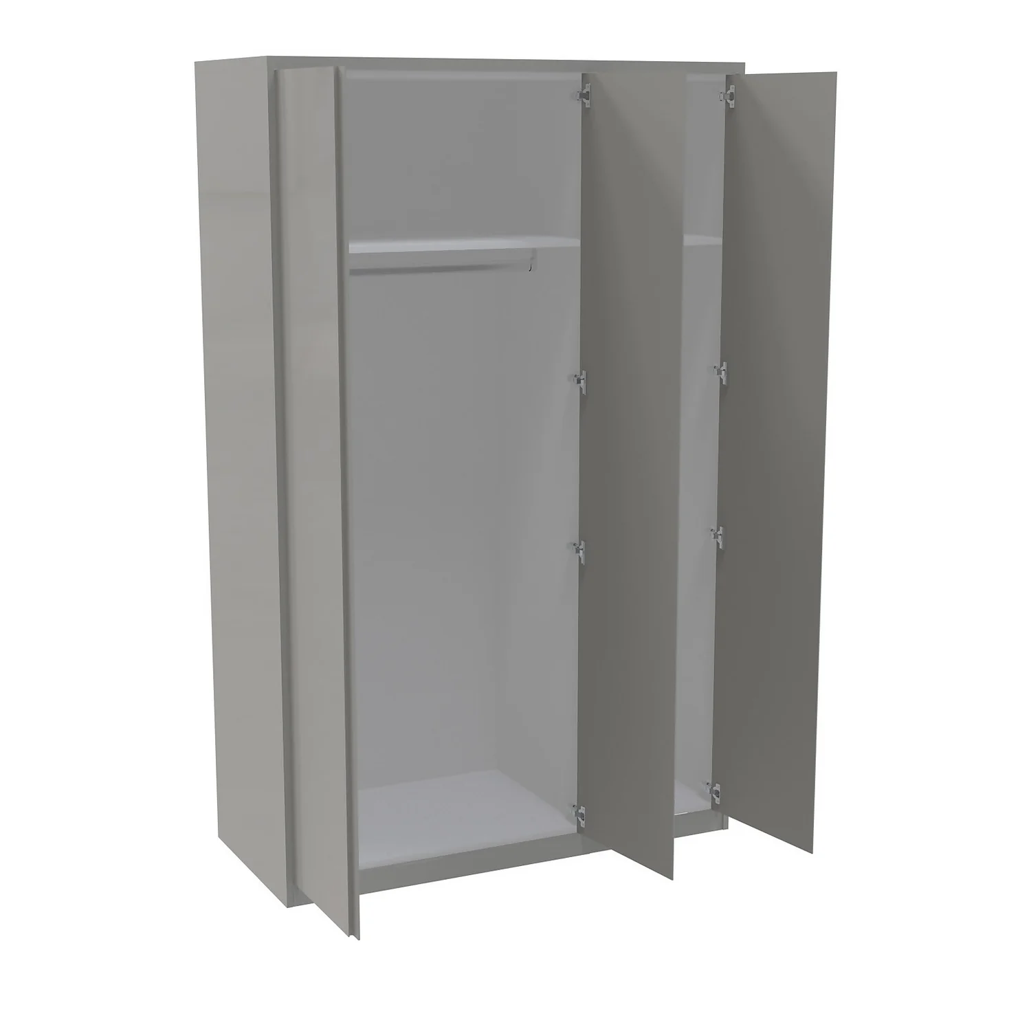 This triple wardrobe (1 x double unit and 1 x single unit) features a white internal carcass and includes end panels, plinth and matching cornice all in a finish to match the beautiful luxe gloss grey handleless doors. The wardrobe features premium soft close clip-on Blum hinges, two shelves and two hanging rails. You can customise your wardrobe with our additional internal storage options (available separately) including internal drawers, shelves, dividing shelves and extra hanging rails.