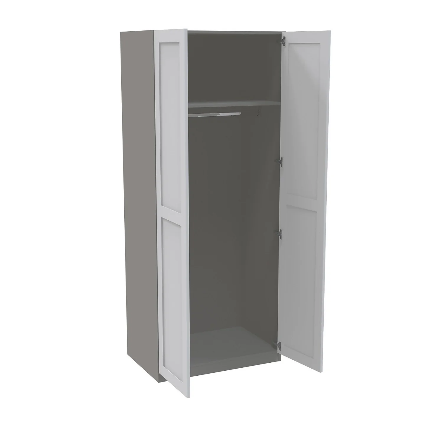 The House Beautiful range is exclusive to Homebase and offers a selection of different finishes and storage configurations to suit your needs. With a range of carcass colours and contrasting door designs, you can select the look to fit your bedroom aesthetic. This double wardrobe features a grey carcass and beautiful shaker doors finished in a luxurious matt white. The wardrobe features premium soft close Blum hinges, a shelf and a hanging rail. You can customise your wardrobe with our additional internal storage options (available separately) including internal drawers, shelves, dividing shelves and extra hanging rails. Choose your handles from our range of both traditional and modern to suit your desired look.