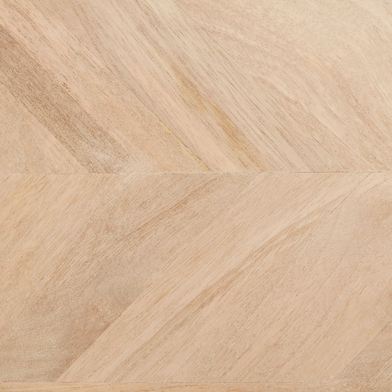 Meet Morgan. The Morgan side table is crafted using beautiful mango wood in a smooth light lacquered finish. This mango wood is combined with a metal structure to make Morgan as industrial as they come. The attention-grabbing parquet design adds a wonderful decorative touch. This side table will do a good job of looking after your books and magazines, as well as holding your drinks and snacks on the top. Use the shorter shelf for popping your remote controls on – and you’ll never waste time looking for them again! Morgan is sure to add warmth to your space and its distinctive modern shape will provide you with a sleek way to house your lounge bits and bobs.